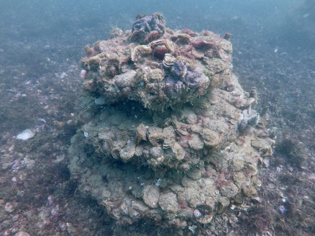 - Présence d’une population cachée d’huîtres plates témoignant de la résilience de l’espèce sur ce secteur.